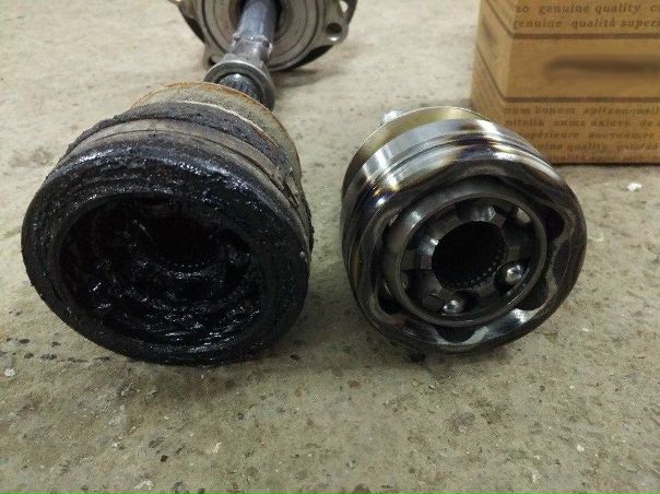 3. Приезжаем, поднимаем авто на подъемник – видим рваный пыльник. В принципе ситуация стандартная.